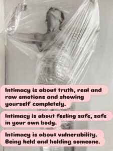 En intimiteit is precies ook dat, jezelf voelen en jezelf laten zien aan de ander.